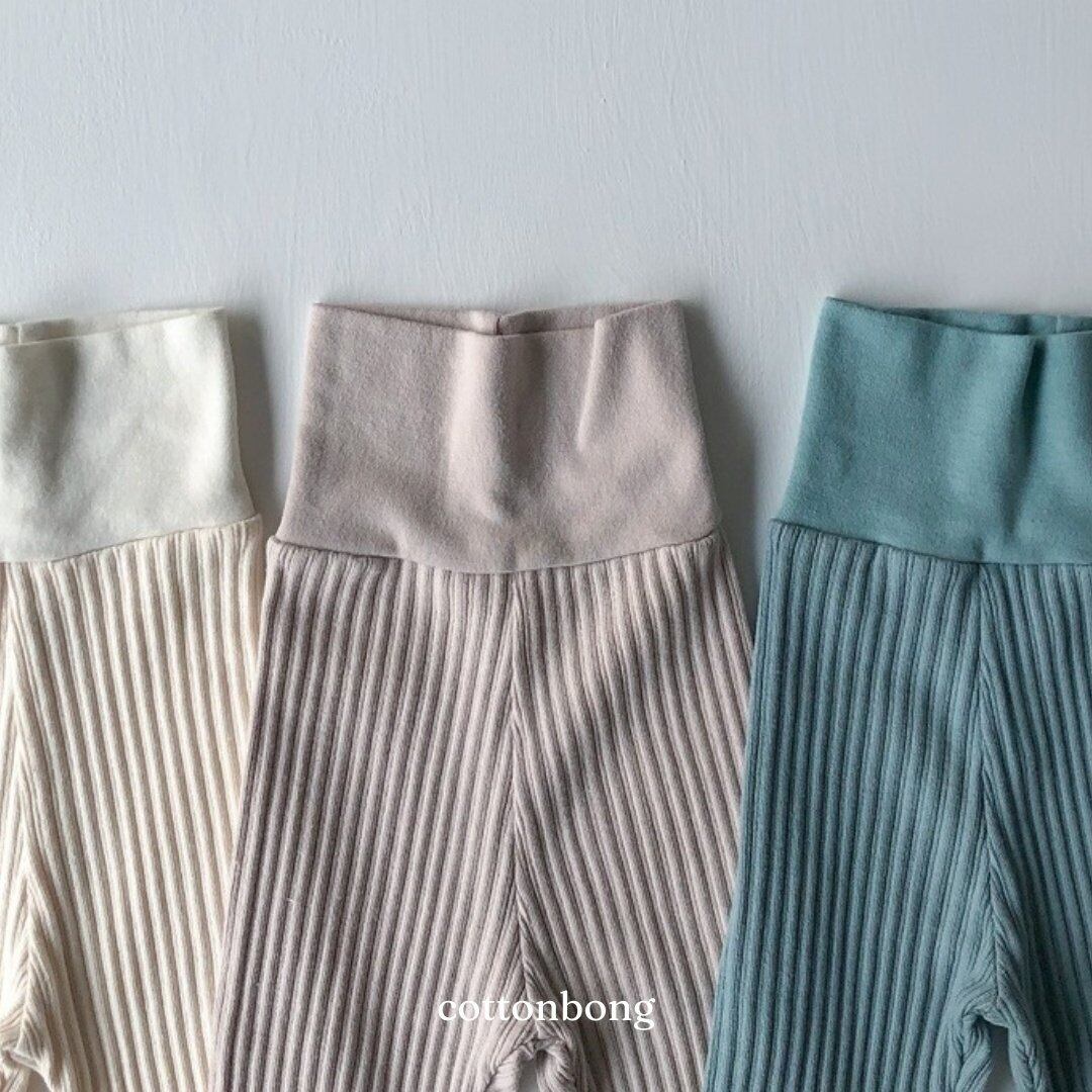 太もも部分はリブ素材でゆったりと、ふくらはぎ部分は無地素材でほどよくすっきり。