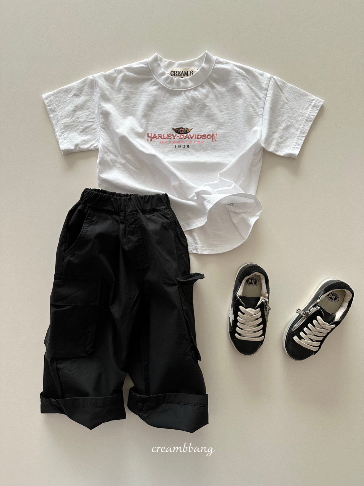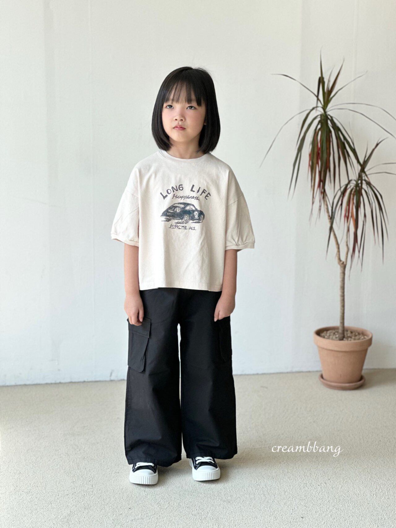 【cream b bang】Cotton Cargo Wide Pants (kids)
